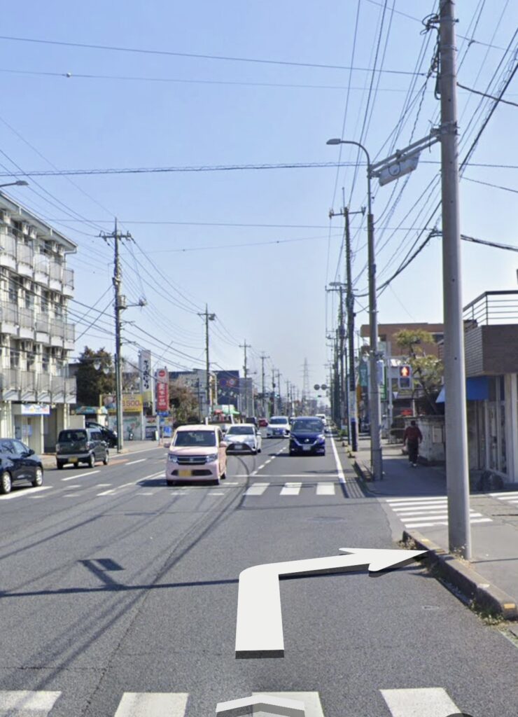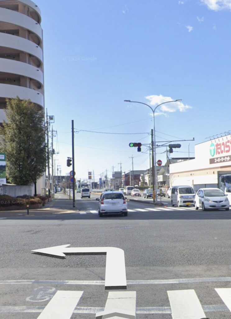 中央線を使用して左折し、柳田街道/鬼怒通りに入る